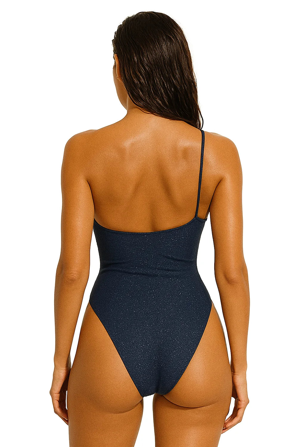 Turn heads with minimalist sophistication in this sleek one-shoulder swimsuit. Designed to accentuate your curves while offering a modern asymmetrical look, it's a swim essential that blends bold structure with elegant simplicity.